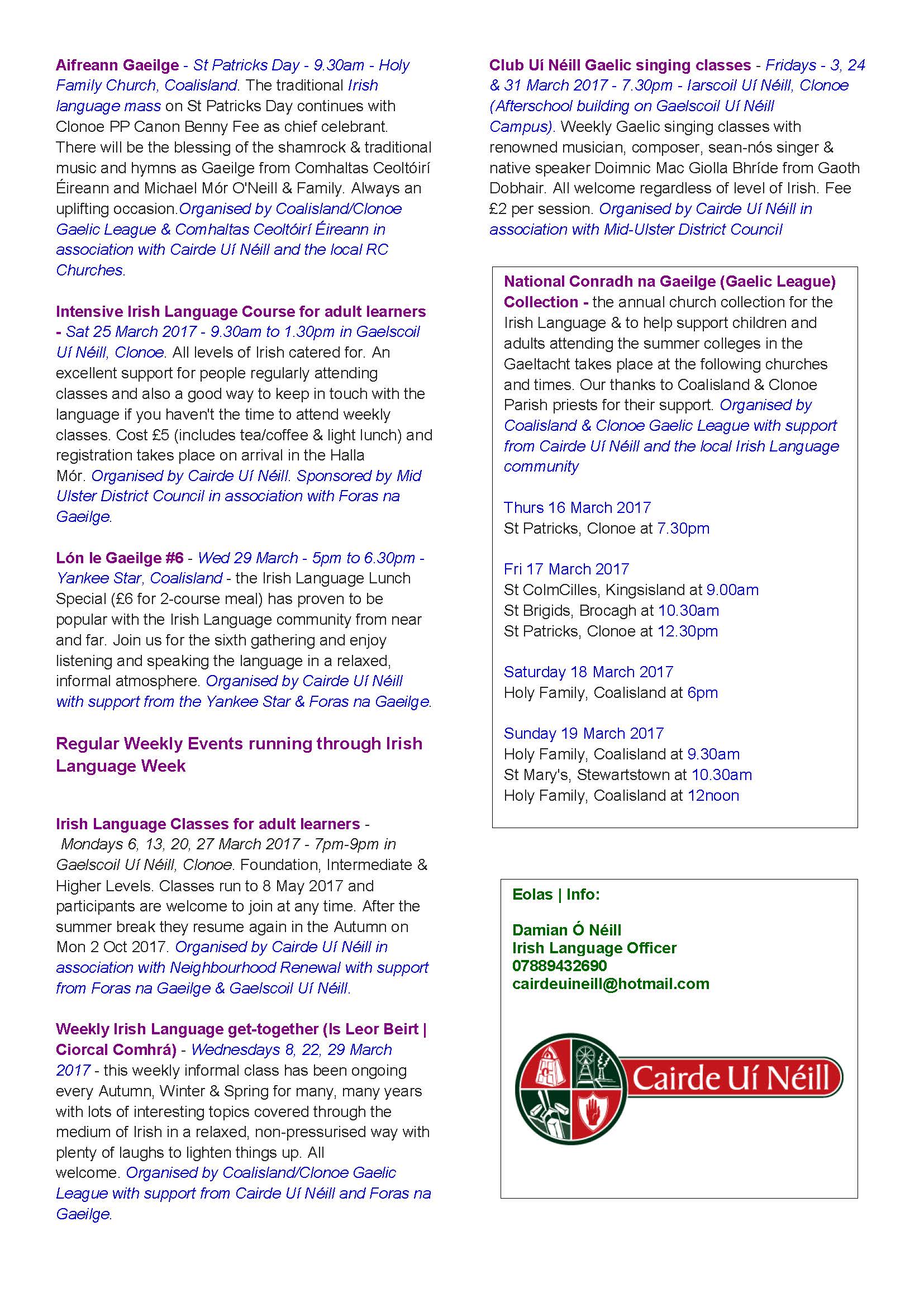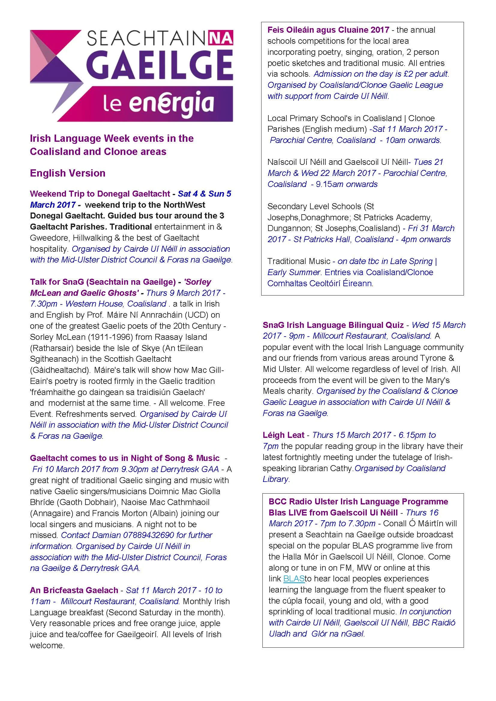 Irish Language Week Programme 2017 for Coalisland & Clonoe - English version